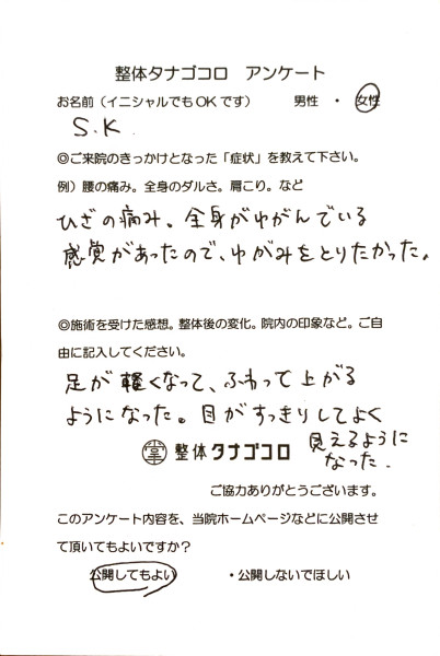 「丁寧な説明と施術で安心」 お悩み S 様 ※効果には個人差があります |