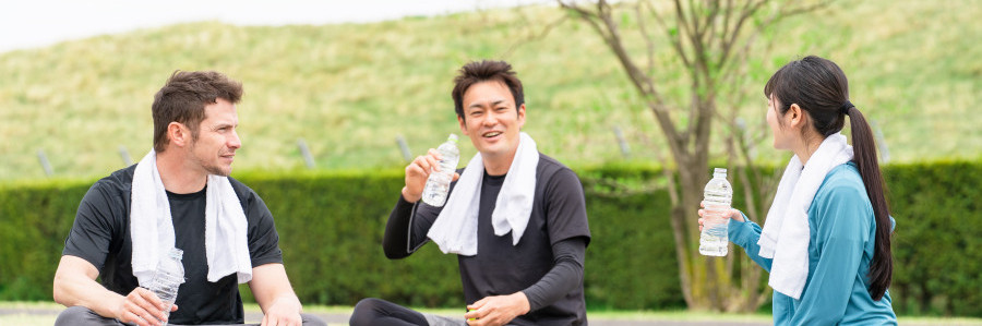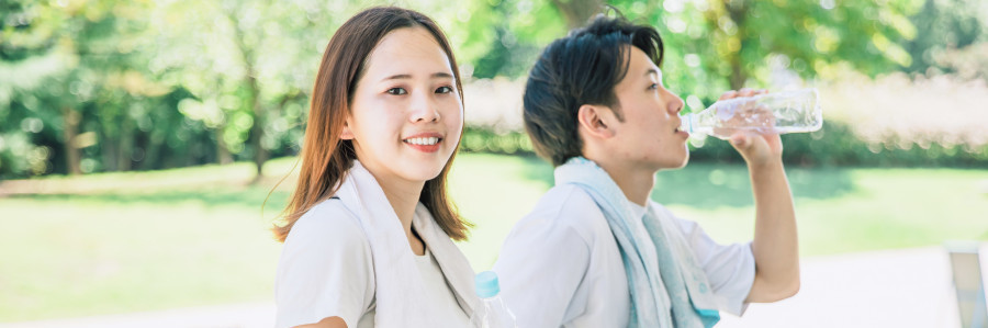 スポーツや散歩など、体を動かすときは「事前の水分補給」が大切。