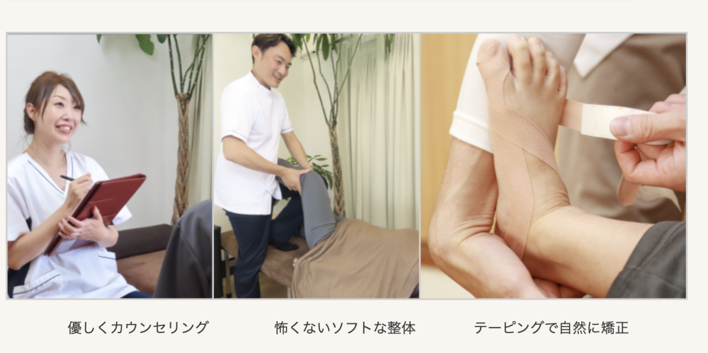 カウンセリングからあなたのライフスタイルや目標に合わせて、施術内容を構築します。施術は痛みを感じない、心地よい技術なので老若男女安心して受けられます。施術後のキネシオテープは「整体を受けても戻ってしまう・・・」と諦めている人には是非受けてもらいたいです。